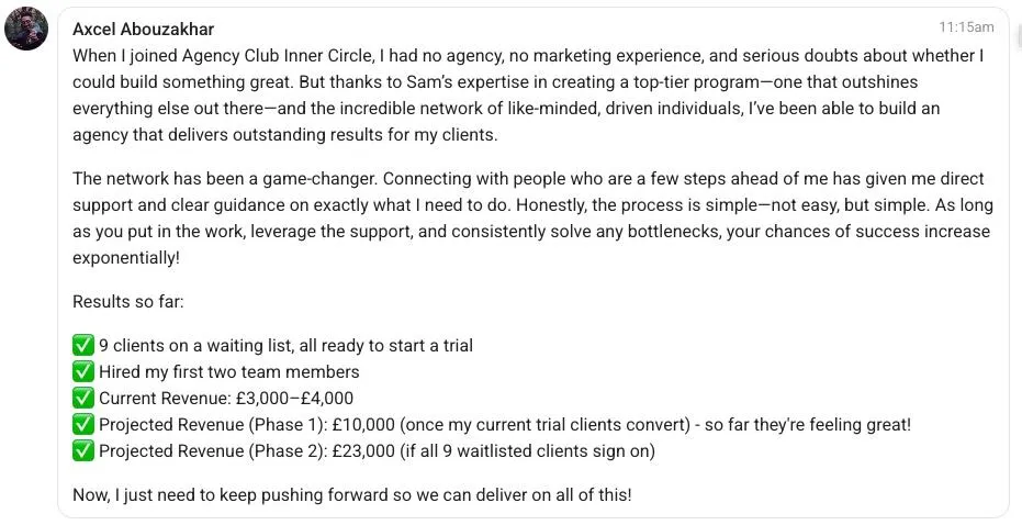 ⭐️ Helped Axcel hone in his niche, become the go-to lead provider for his industry and grow to over 10 clients in a few months...