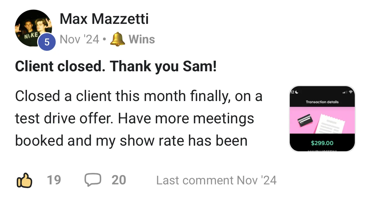 Sales training, offer guidance, and organic client acquisition strategies that actually work today...